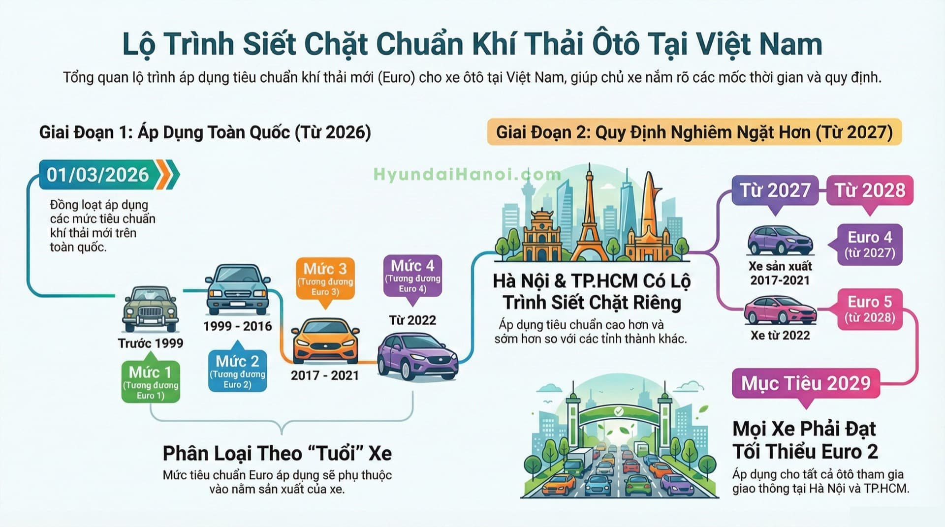 | Tất cả loại xe | Euro 2 | từ 2029 tại Hà Nội và TP HCM |